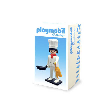 Plastoy Playmobil Cocinero de la serie Nostalgie de 25cm de altura realizado en resina con sartén, pollo y base de soporte.
