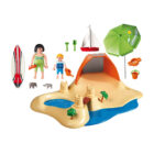 Playmobil 4149 Compact set playa. Una caja con una bonita escena playera con dos figuras, sombrilla, tabla de surf y complementos.