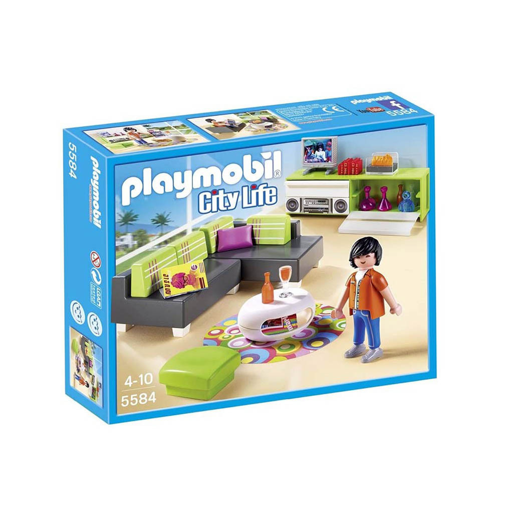 Playmobil 5584 Sala de estar Mansión moderna. Salón con un estilo retro-pop para completar tu apartamento.