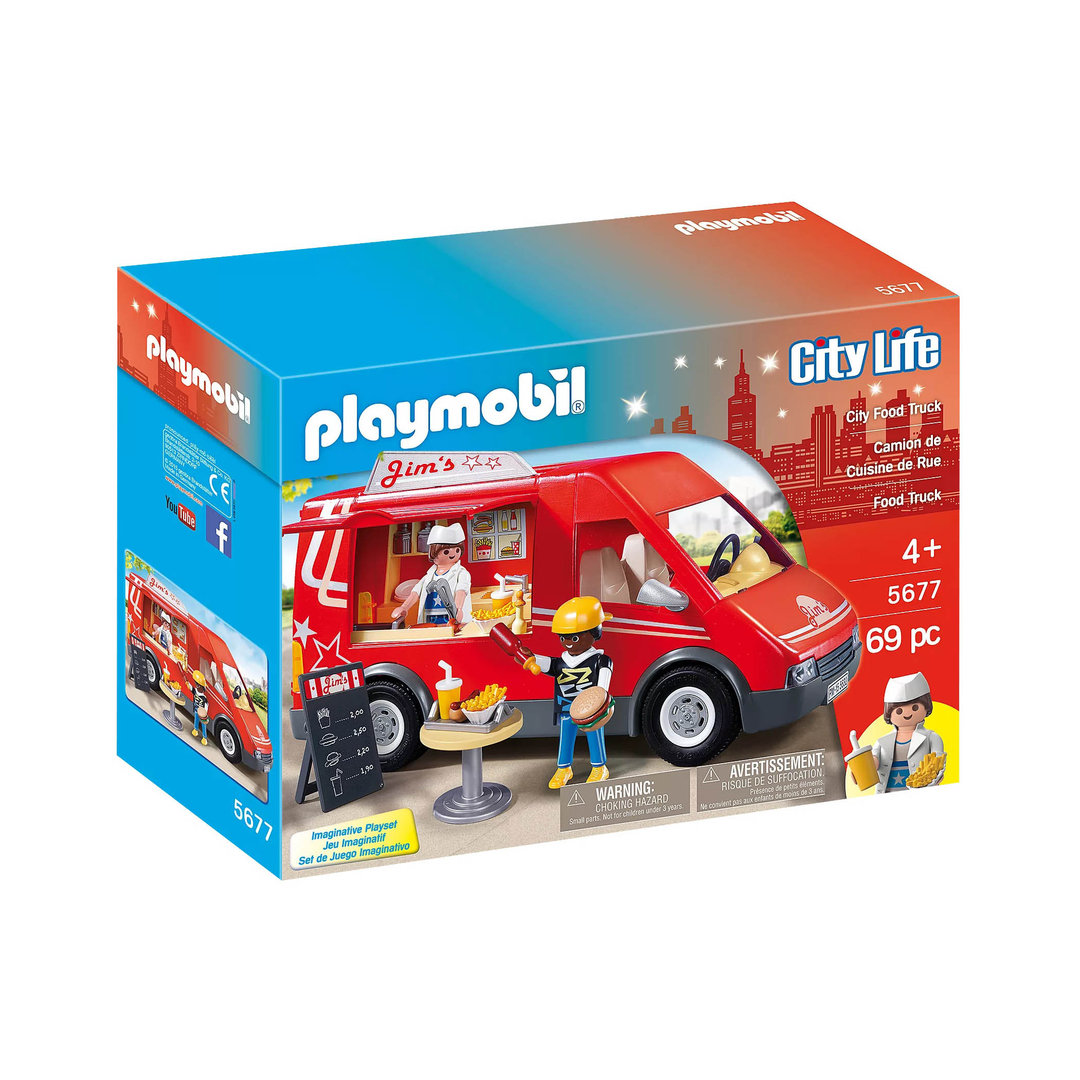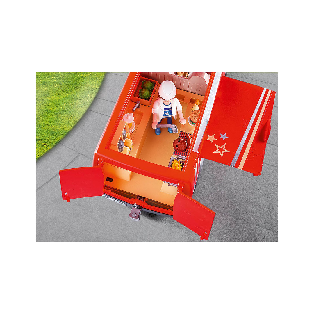 Playmobil 5677 City Food Truck con dos personajes, hamburguesas, perritos calientes, patatas fritas y muchos complementos.