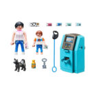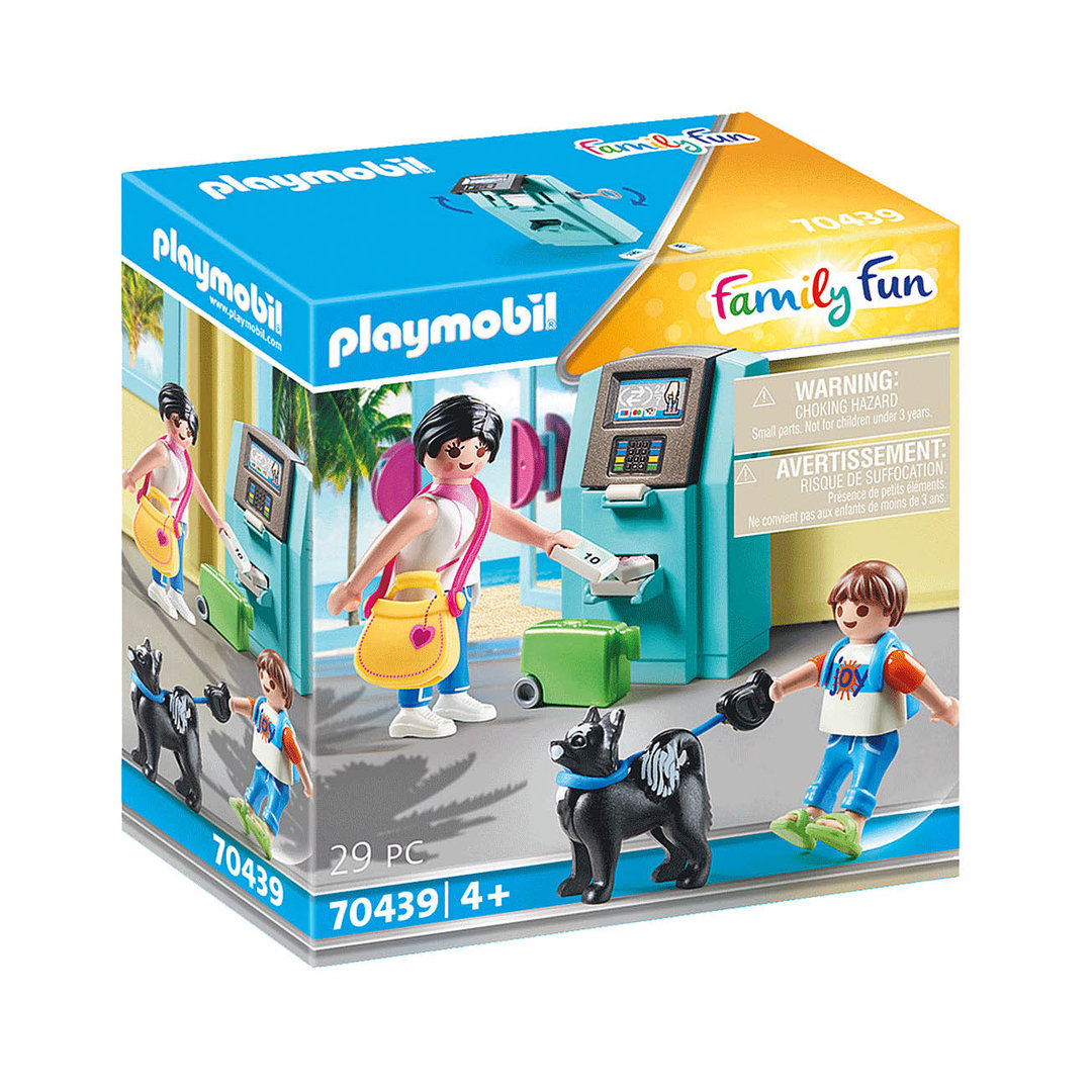 Playmobil 70439 Turistas con cajero. Una madre con su hijo y con el perro sacando dinero del cajero en vacaciones.