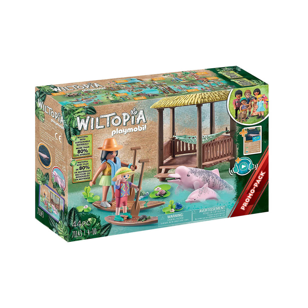 Playmobil 71143 Tour de Remo con los Delfines de Río. Con dos figuras sobre tablas de surf y cabaña.