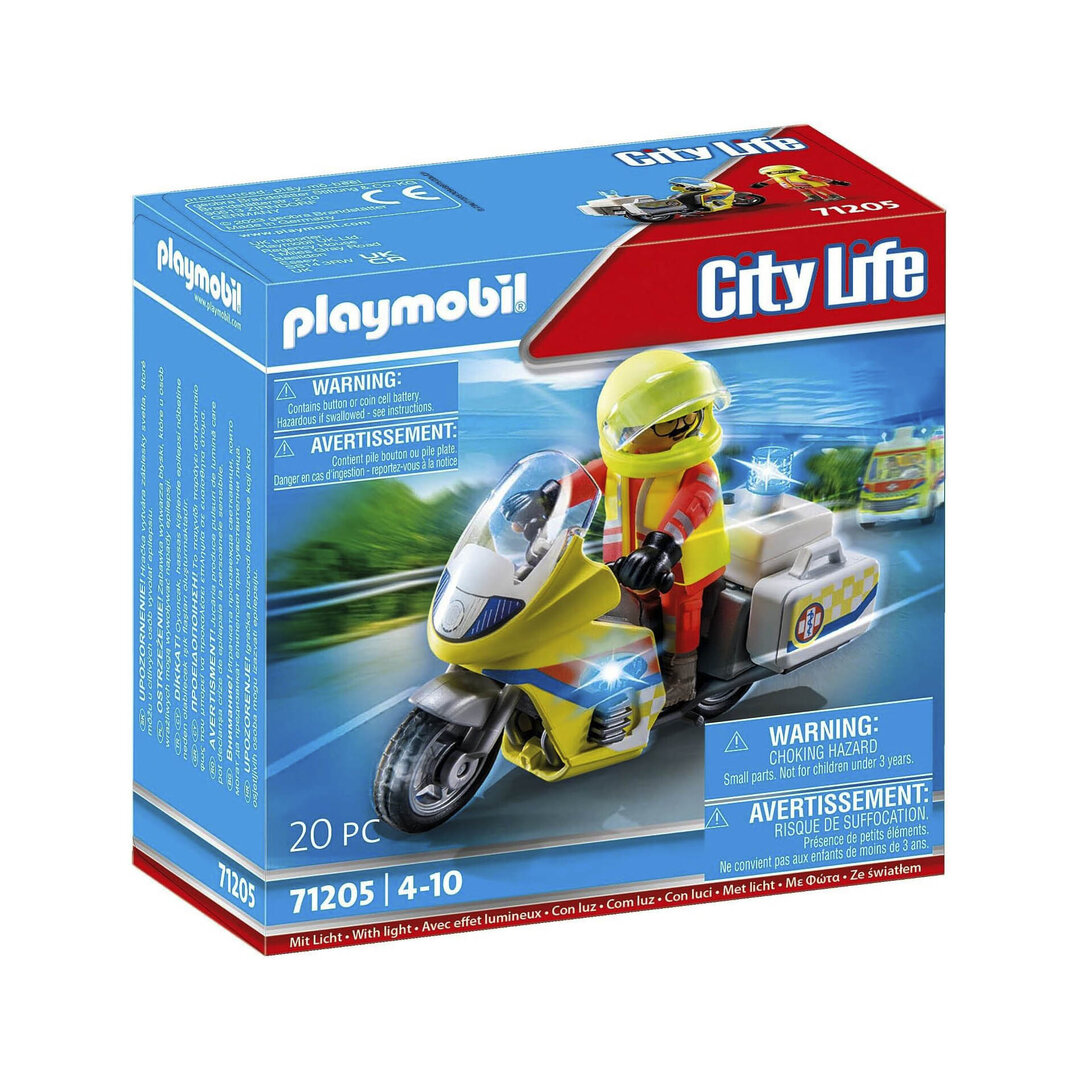 Playmobil 71205 Moto de Emergencias con luz intermitente para el médico y los primeros auxilios en caso de accidente.