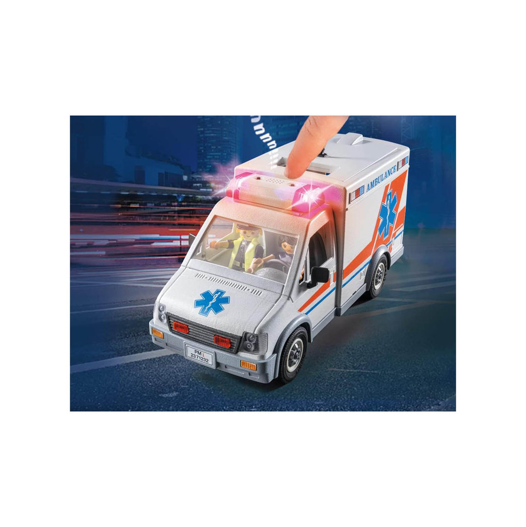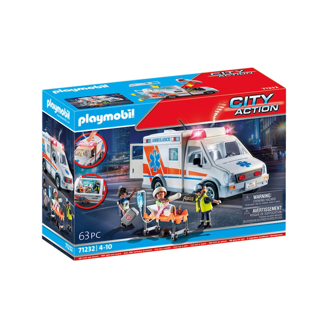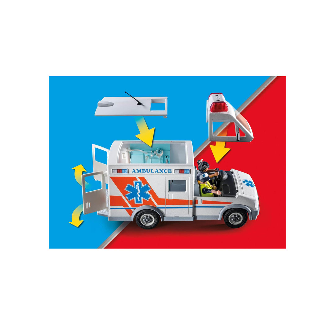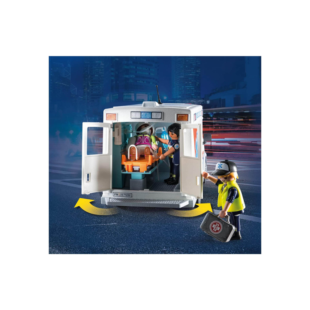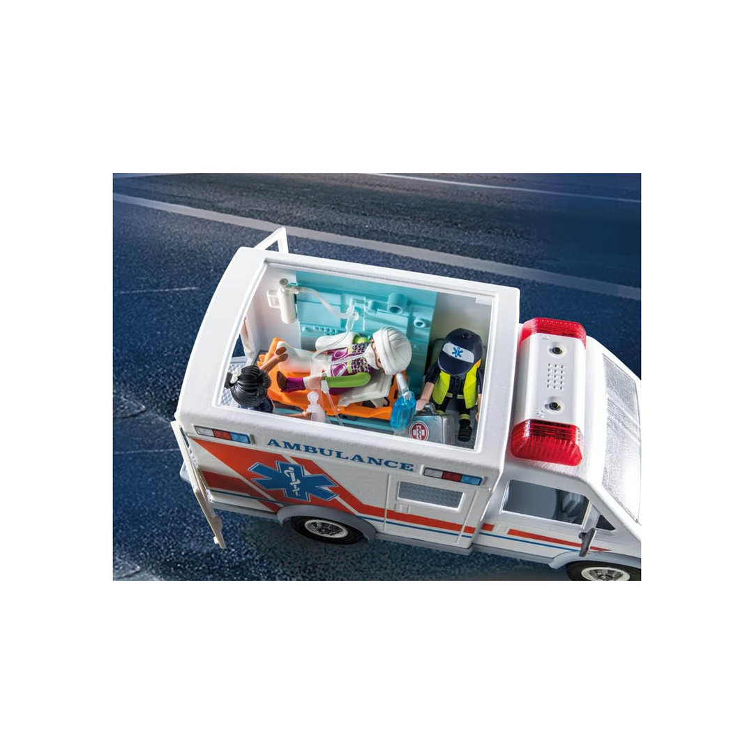 Playmobil 71232 Ambulancia americana con tres figuras, camilla y complementos médicos para el paciente.