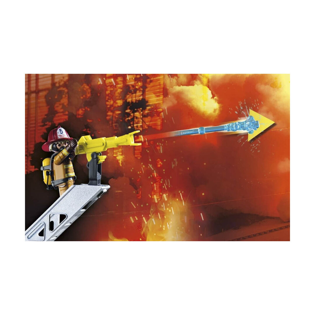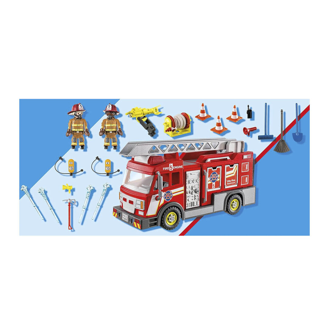 Playmobil 71233 Camión de bomberos con escalera que gira y cañon de agua giratorio, dos bomberos y complementos.