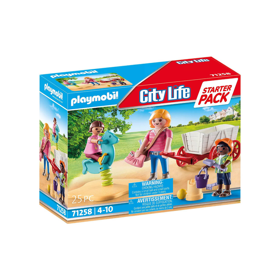 Playmobil 71258 Starter Pack Educadora con Carrito, dos niños y varios complementos para jugar en el parque.