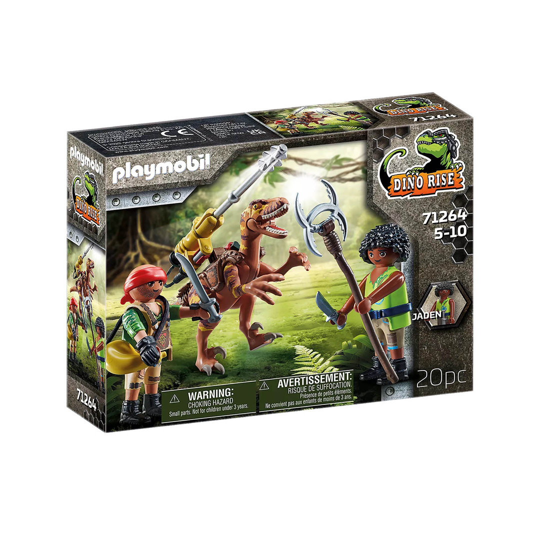Playmobil 71264 Deinonychus. Dos figuras y un dinosaurio armado con un cañon desmontable y giratorio.
