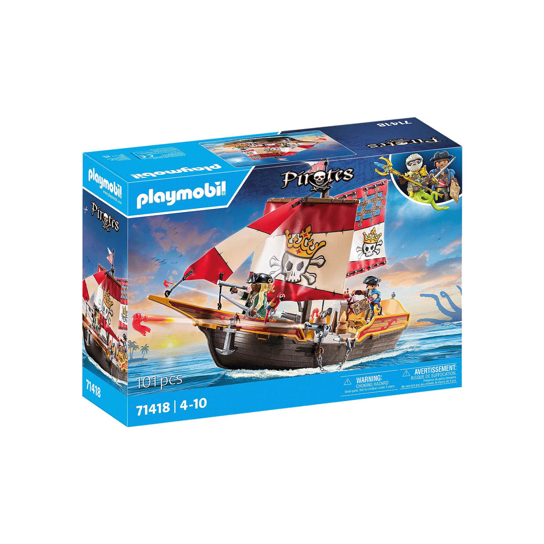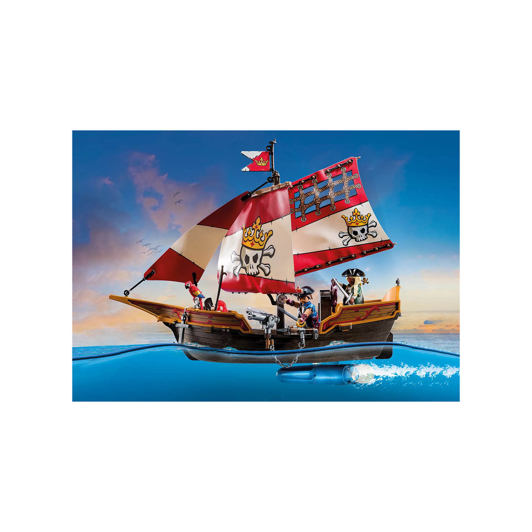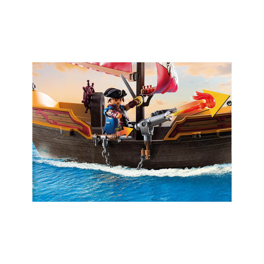 Playmobil 71418 Barco pirata. El barco de la reina de los bucaneros con dos figuras, muchas armas y un loro parlanchín.