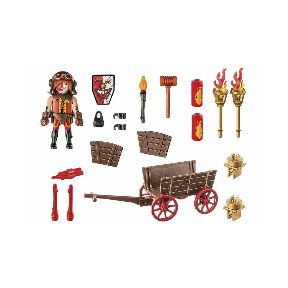 Playmobil 71486 Carro de Kahboom de los caballeros de Burnham equipado con dinamita y bengalas.