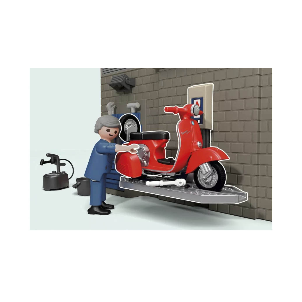 Playmobil 71620 Garaje Vespa años 60. Con dos figuras y todas las herramientas para arreglar tu moto.