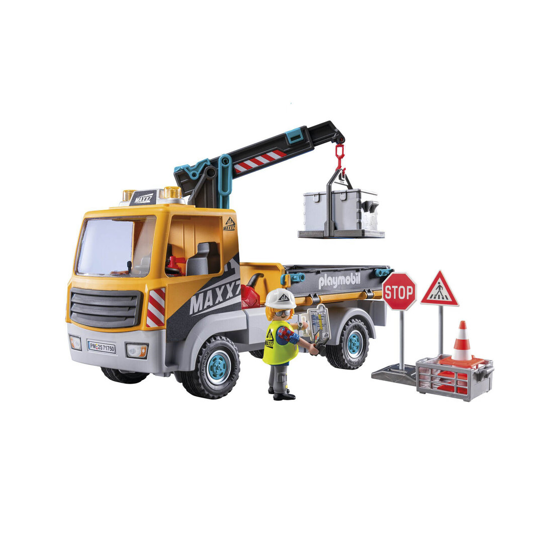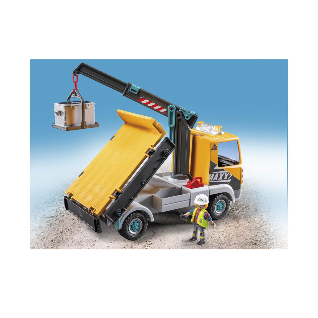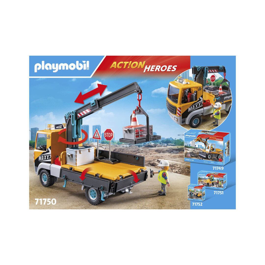Playmobil 71750 Camión de construcción con grúa con brazo telescópico que se puede extender y girar, para maniobrar los objetos.