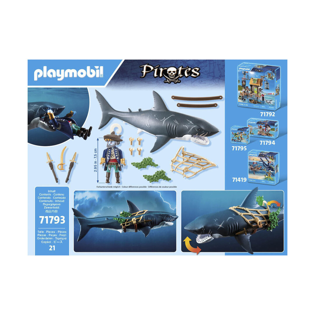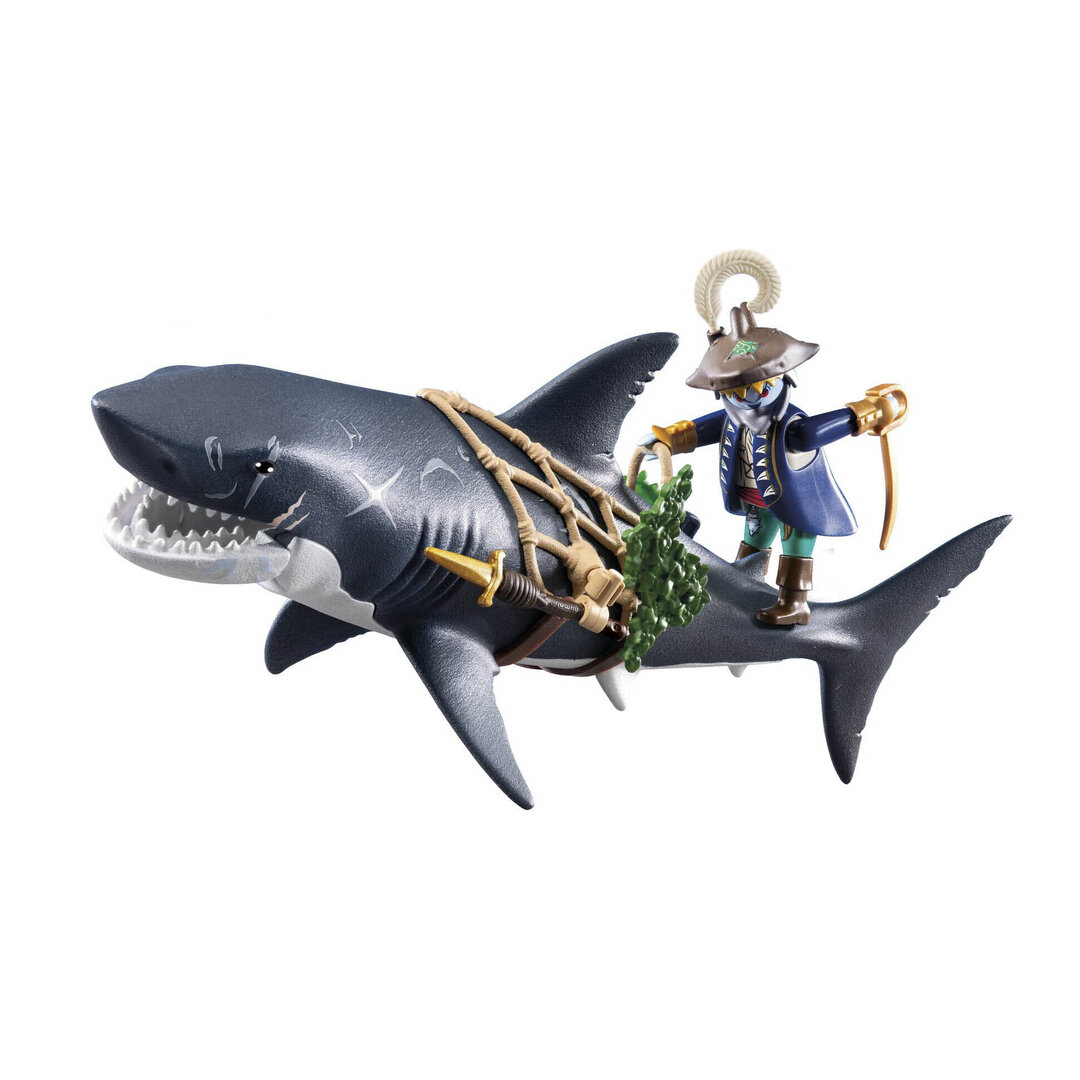 Playmobil 71793 Tiburón gigante con pirata. Un enorme escualo que puede atrapar a los piratas en su gran boca.