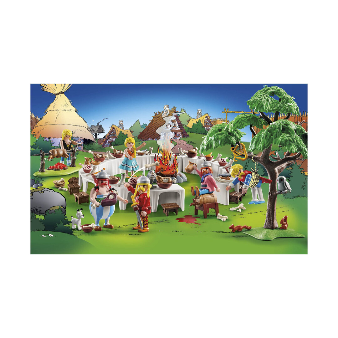 Playmobil 71827 Astérix: el banquete de la aldea. Reúne a los galos alrededor de las mesas, cargadas de platos, tazas y deliciosa comida.