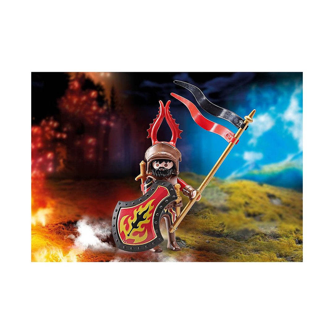 Playmobil 9837 Capitán de los bandidos de Burnham con casco y escudo para completar tu colección de caballeros y castillos retrofuturistas.