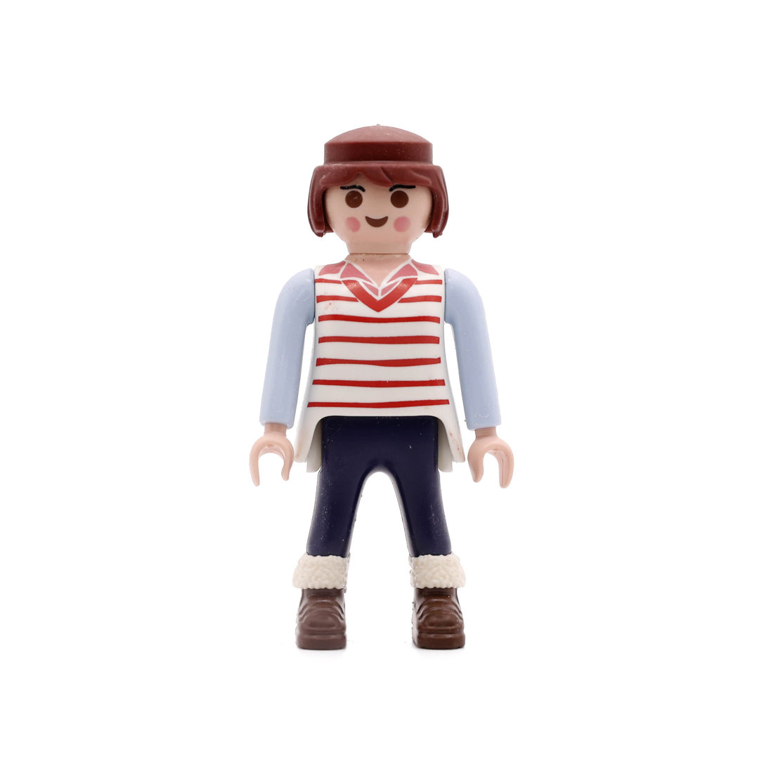 Playmobil Chica castaña de azul, rojo y blanco. Una bonita figura que no podrá faltar en tu colección.