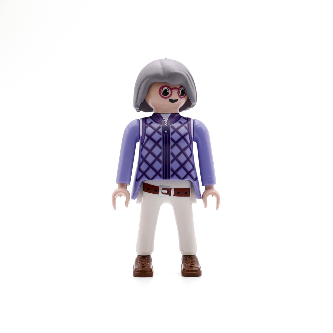 Playmobil Chica de blanco violeta con pelo gris. Una bonita figura que no podrá faltar en tu colección.