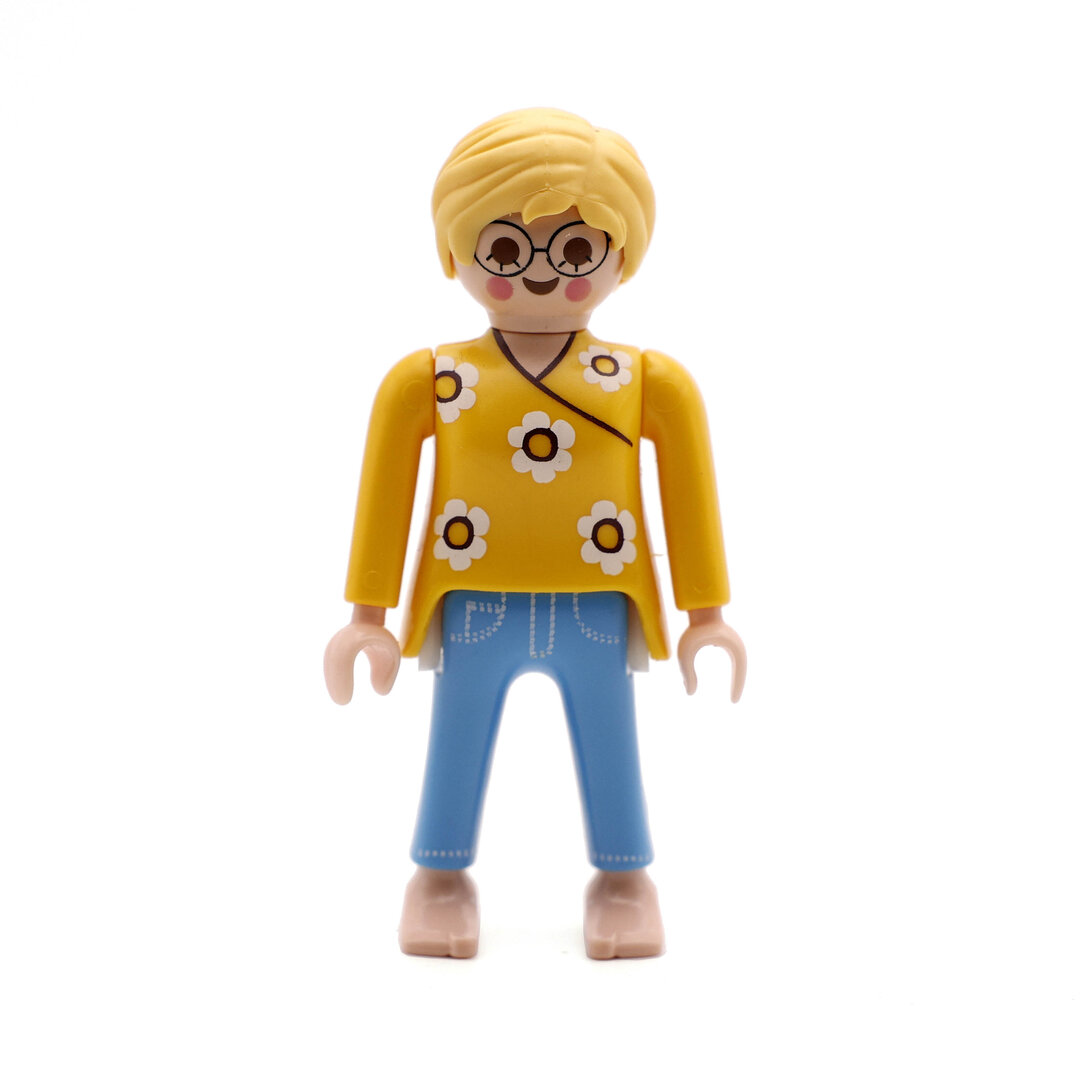 Playmobil Chica rubia de amarillo y azul. Una bonita figura que no podrá faltar en tu colección.