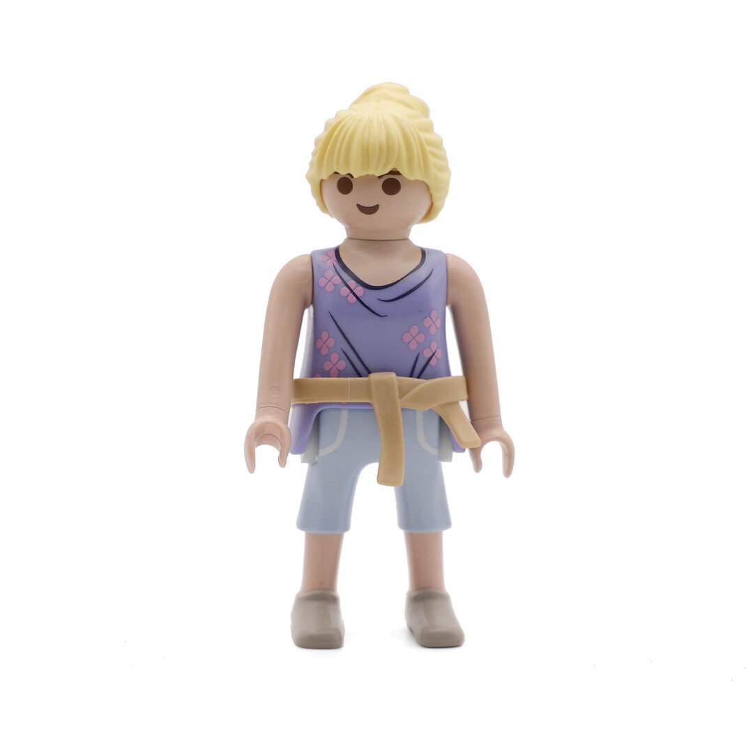 Playmobil Chica rubia de azul con cinturón. Una bonita figura que no podrá faltar en tu colección.
