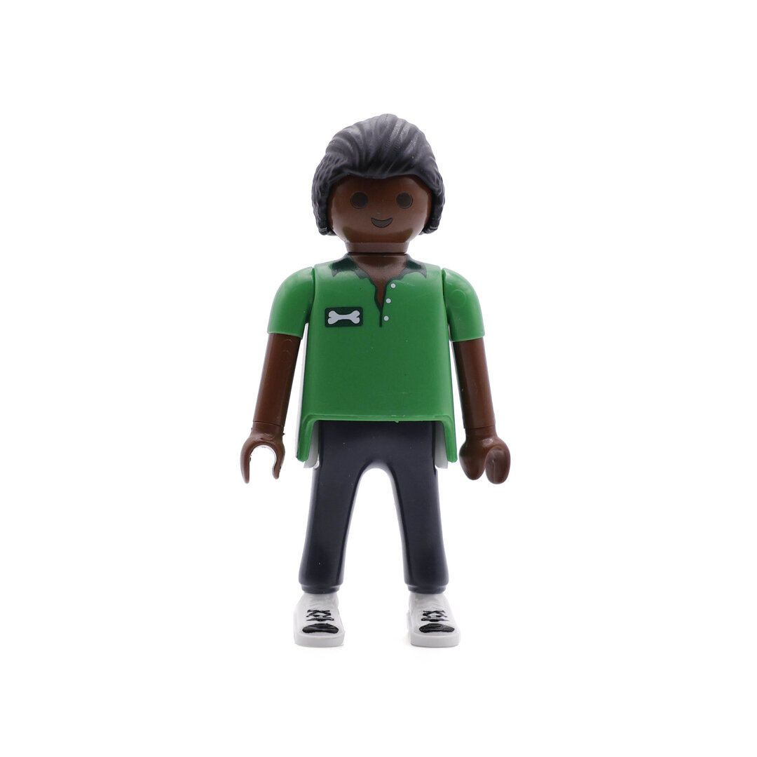 Playmobil Chico de verde y gris, paseador de perros. Una bonita figura que no podrá faltar en tu colección.