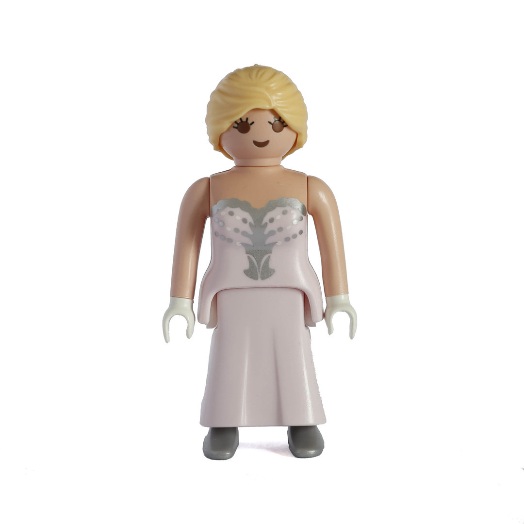 Playmobil Novia rubia de vestido rosaceo para acudir a la cita más importante de su vida. Figura imprescindible en tu colección.